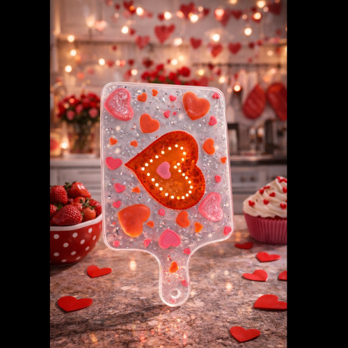 Add a little love to your kitchen with this handcrafted resin heart cutting board. Designed...