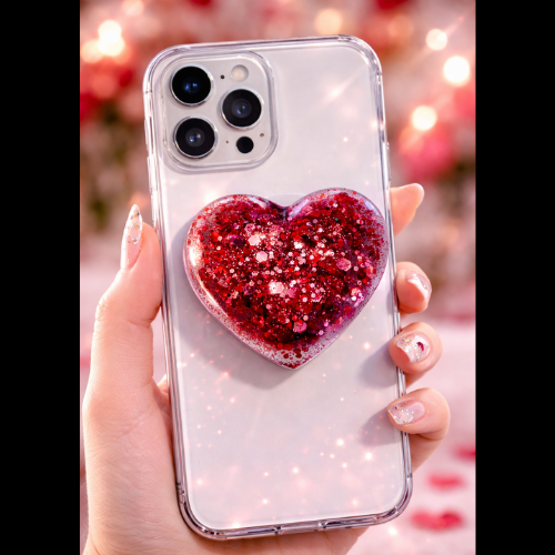 Hot Pink glitter Heart Phone Pop Grip- Valentine's Collection