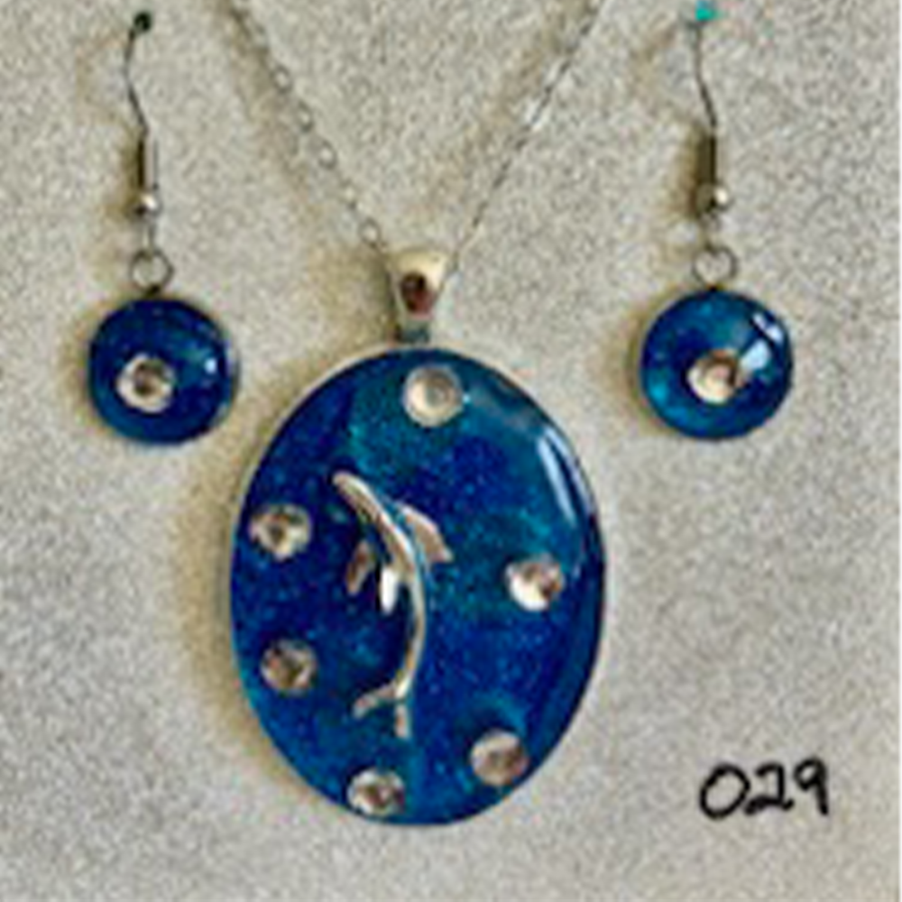 Deep Blue Dolphin and Rhinestone Jewelry Set (029)