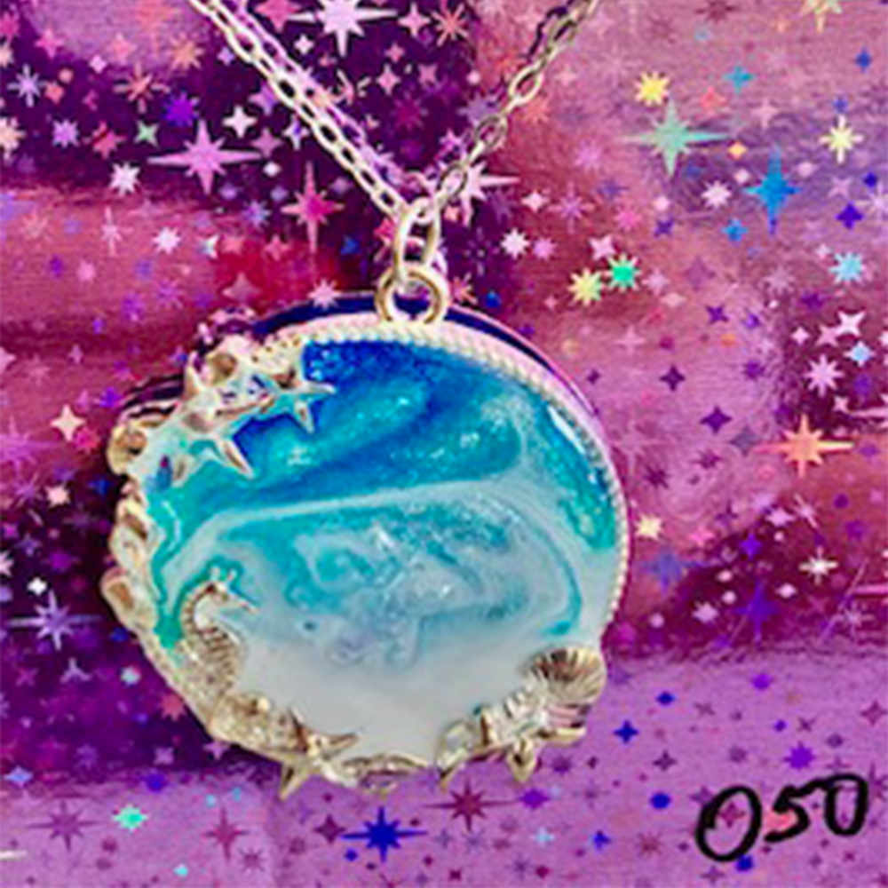 Deep Blue Swirl Ocean Resin Necklace (050)