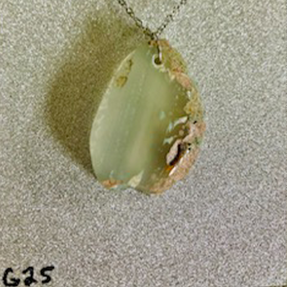 A serene and unique natural agate slice pendant. The polished stone features a soft, translucent...