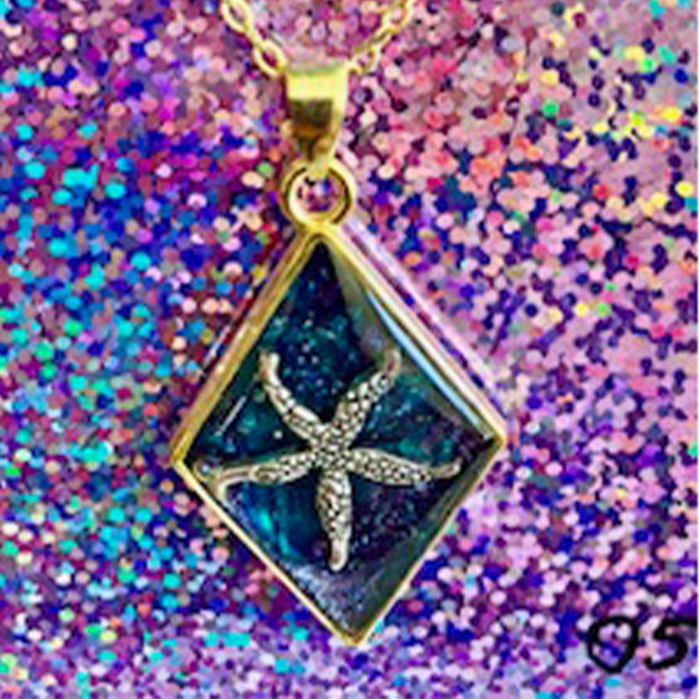 Ornate Mermaid Ocean Wave Resin Necklace (036)