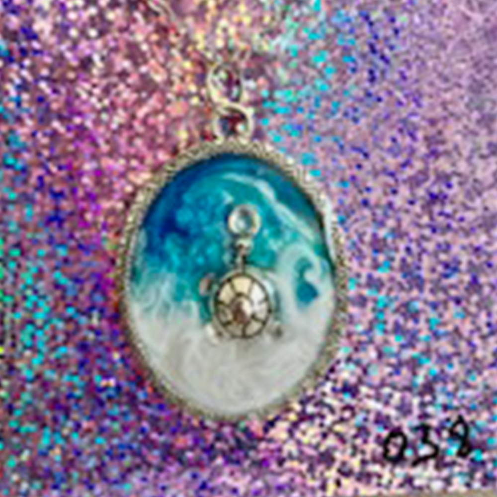 Silver Sea Turtle Ocean Wave Resin Necklace (032)