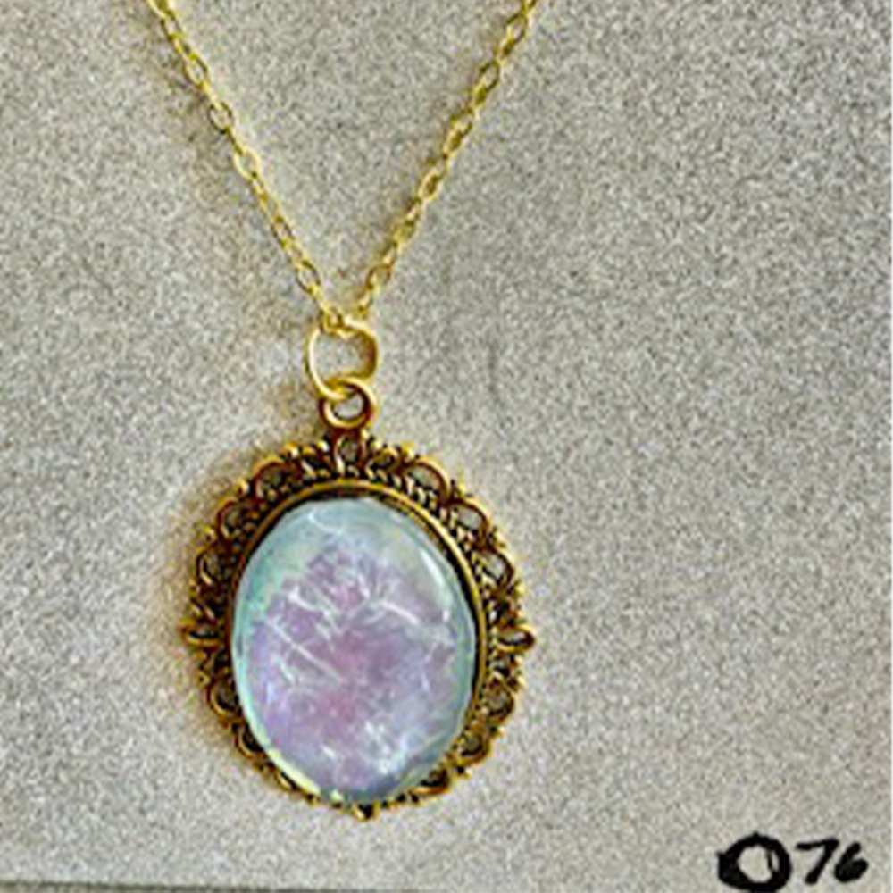 Vintage Gold-Tone Iridescent Resin Opal Necklace (076)