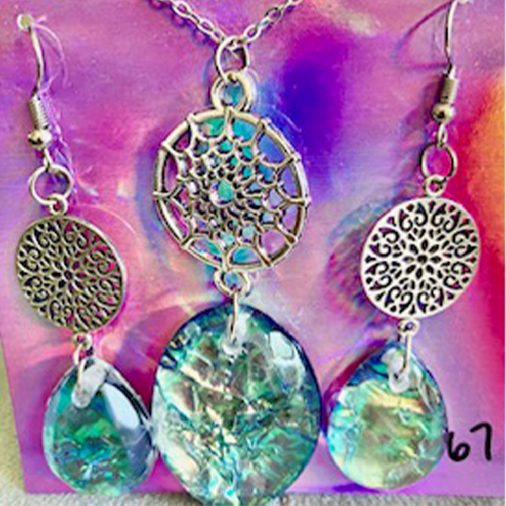 Mermaid Heart Charm & Iridescent Drop Jewelry Set (018)