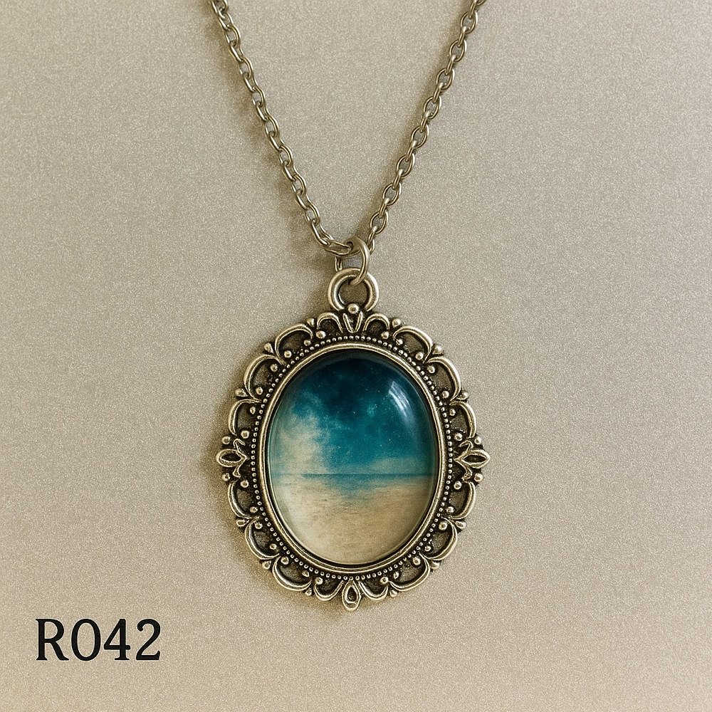 Deep Sea to Seashore Gradient Resin Pendant in Ornate Silver Frame R64