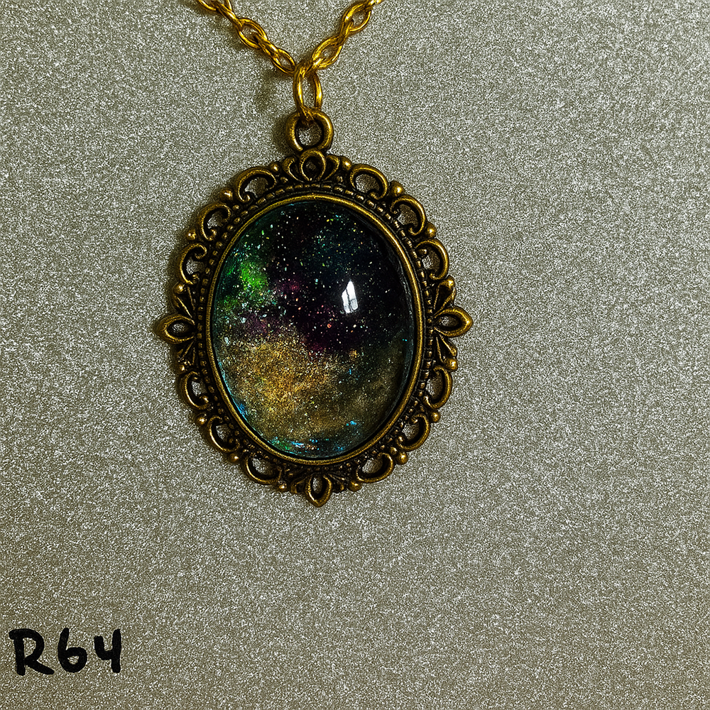 Jewel-Toned Nebula Glitter Pendant in Ornate Gold Frame R42
