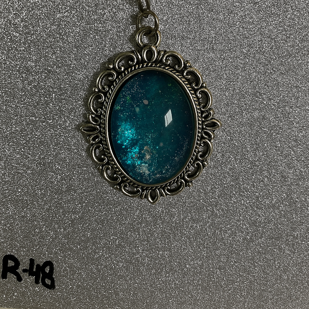 Deep Teal Shimmer Resin Pendant in Antique Silver Setting R61
