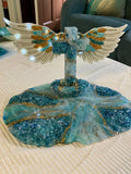 Celestial Angel Wings Cross Resin Display Stand with Geode Base