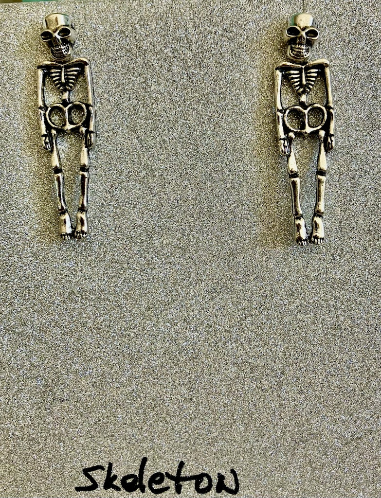 Dangling Full Skeleton Charm Earrings - Edgy Halloween & Gothic Jewelry