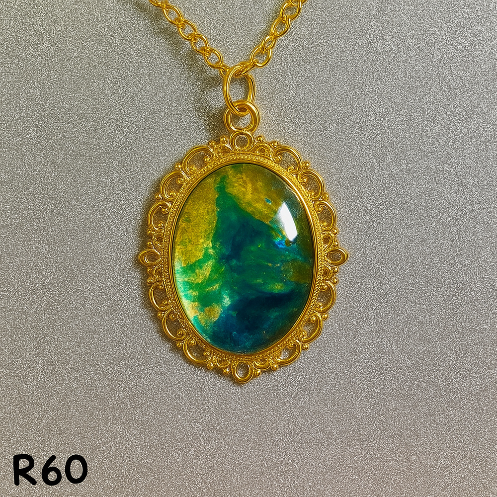 Deep Sea to Seashore Gradient Resin Pendant in Ornate Silver Frame R60
