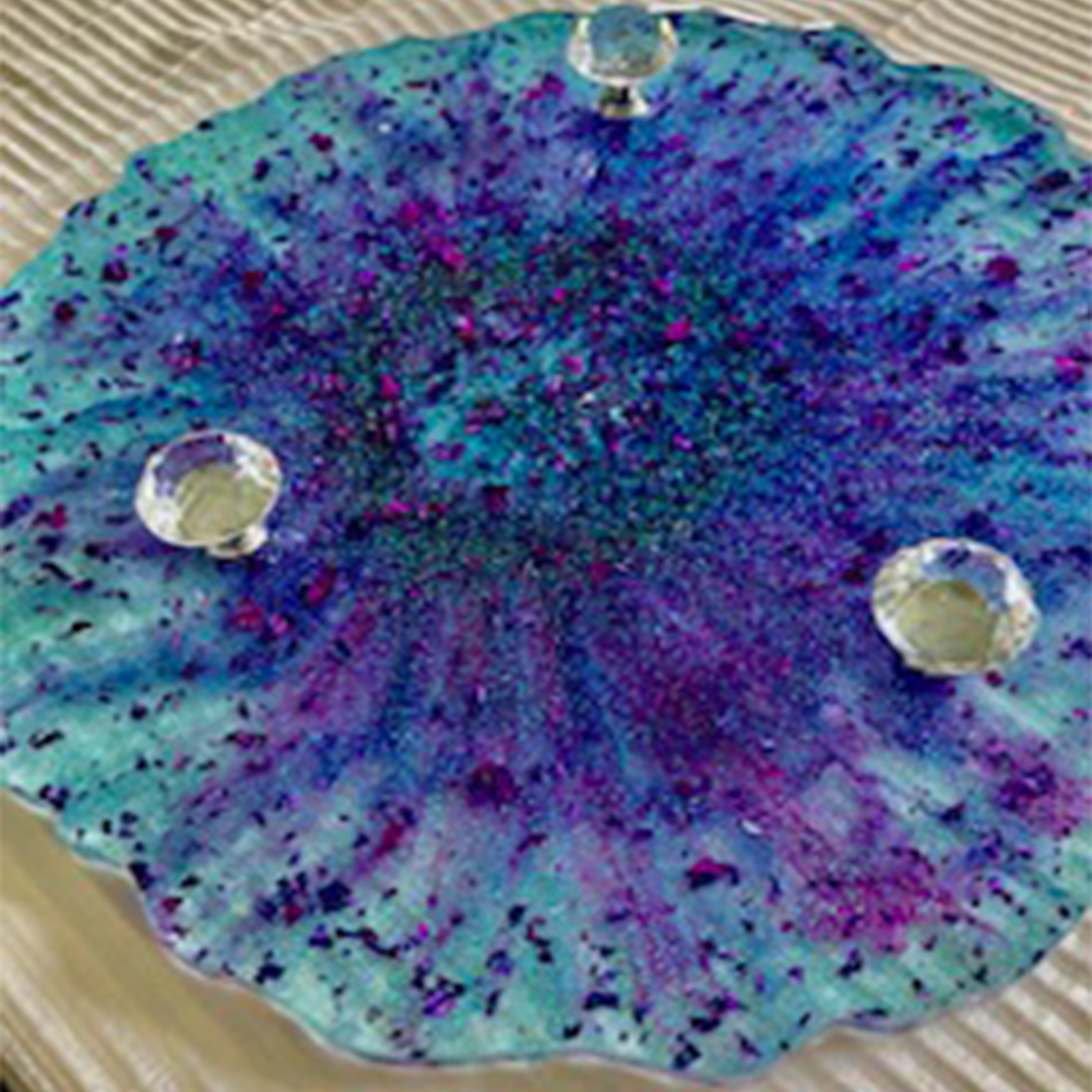 Electric Purple & Teal Burst Resin Display Stand with Crystal Feet