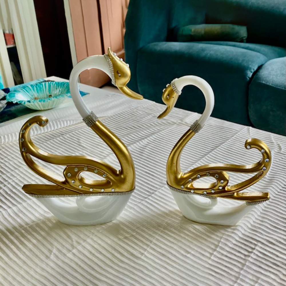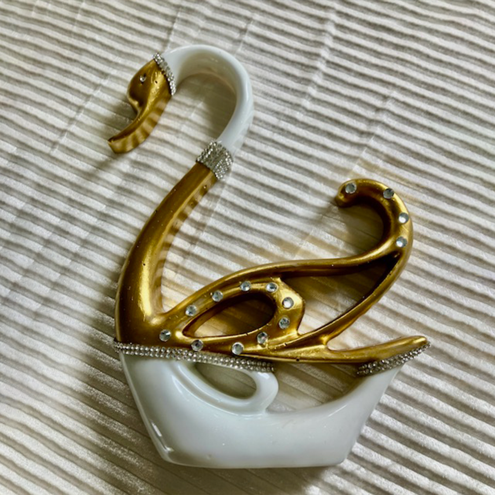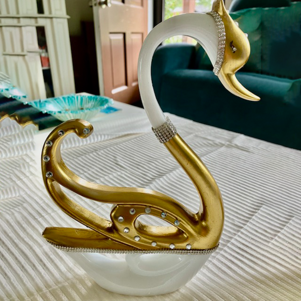 Glamorous Gold & White Swan Figurine with Rhinestone Accents