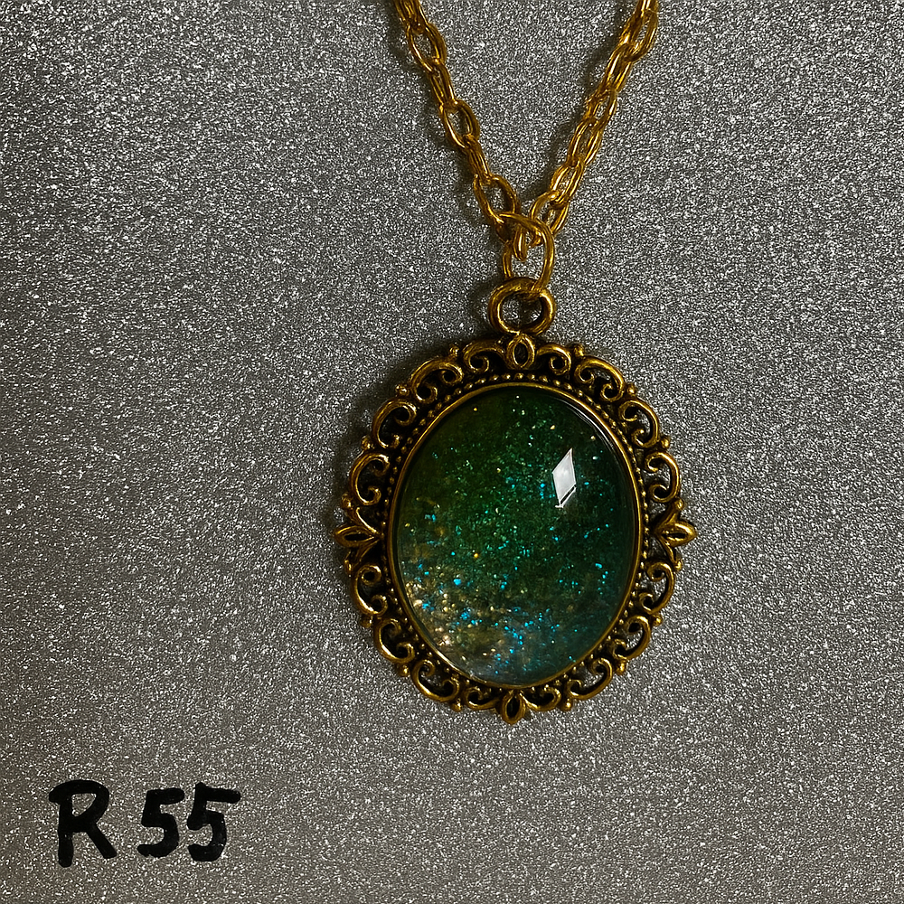 Glittering Forest Green and Gold Resin Pendant Necklace R55