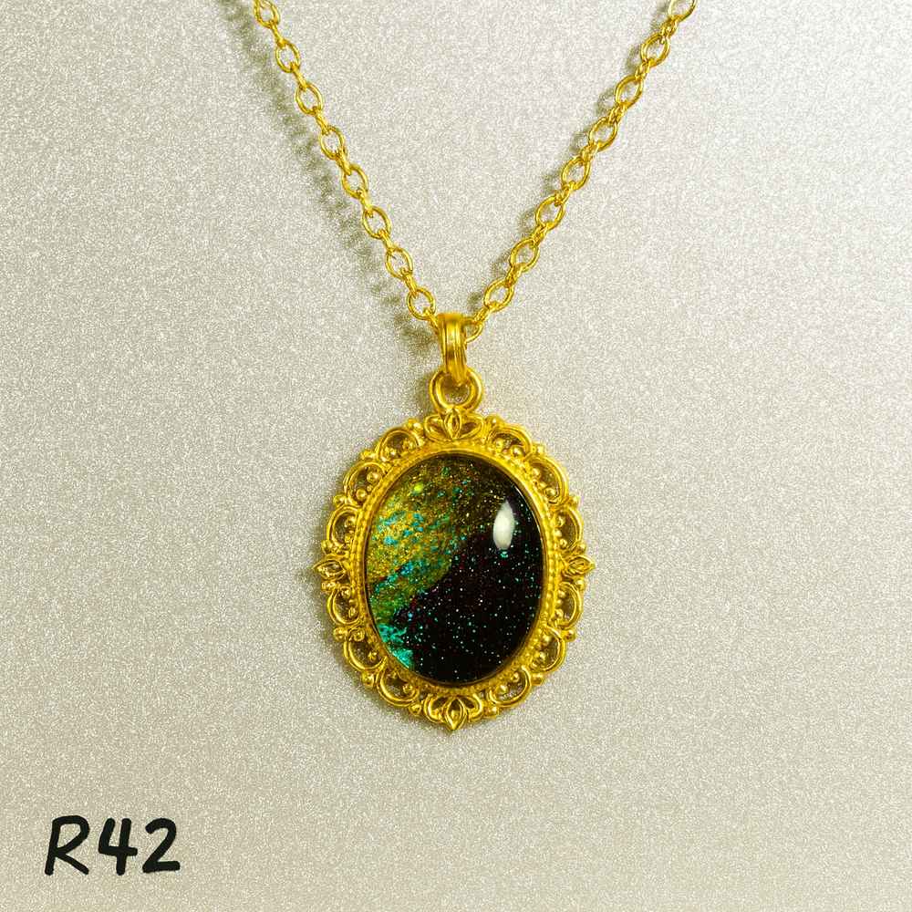 Glittering Frost and Teal Resin Gradient Pendant in Antique Silver R42