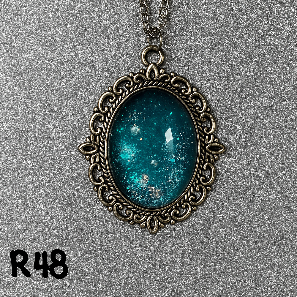 Icy Teal and Silver Beach Gradient Pendant in Ornate Frame R48