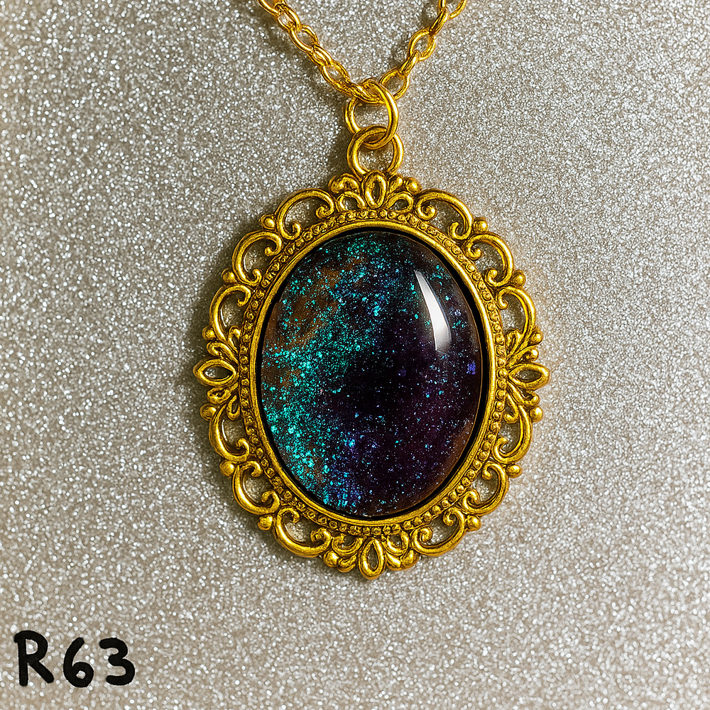 Midnight Teal and Dark Berry Glitter Resin Pendant Necklace R63