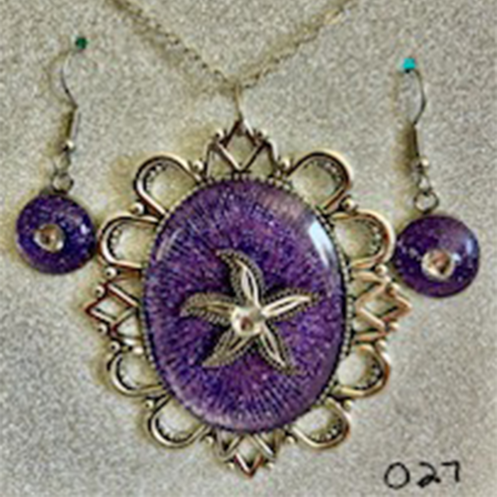 Ornate Silver Starfish and Purple Glitter Set (027)