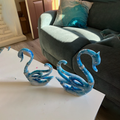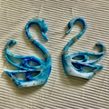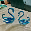 Pair of Aqua Blue Marbled Swan Wall Sconces with Glitter Accents
