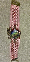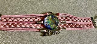 Pink Braided Wrap Bracelet with Iridescent Abalone Shell Cabochon