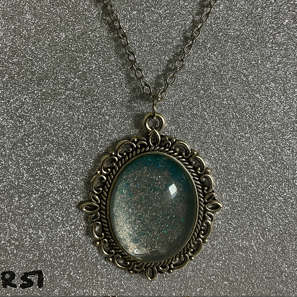 Saturated Teal Glitter Resin Pendant in Ornate Bronze Setting R57