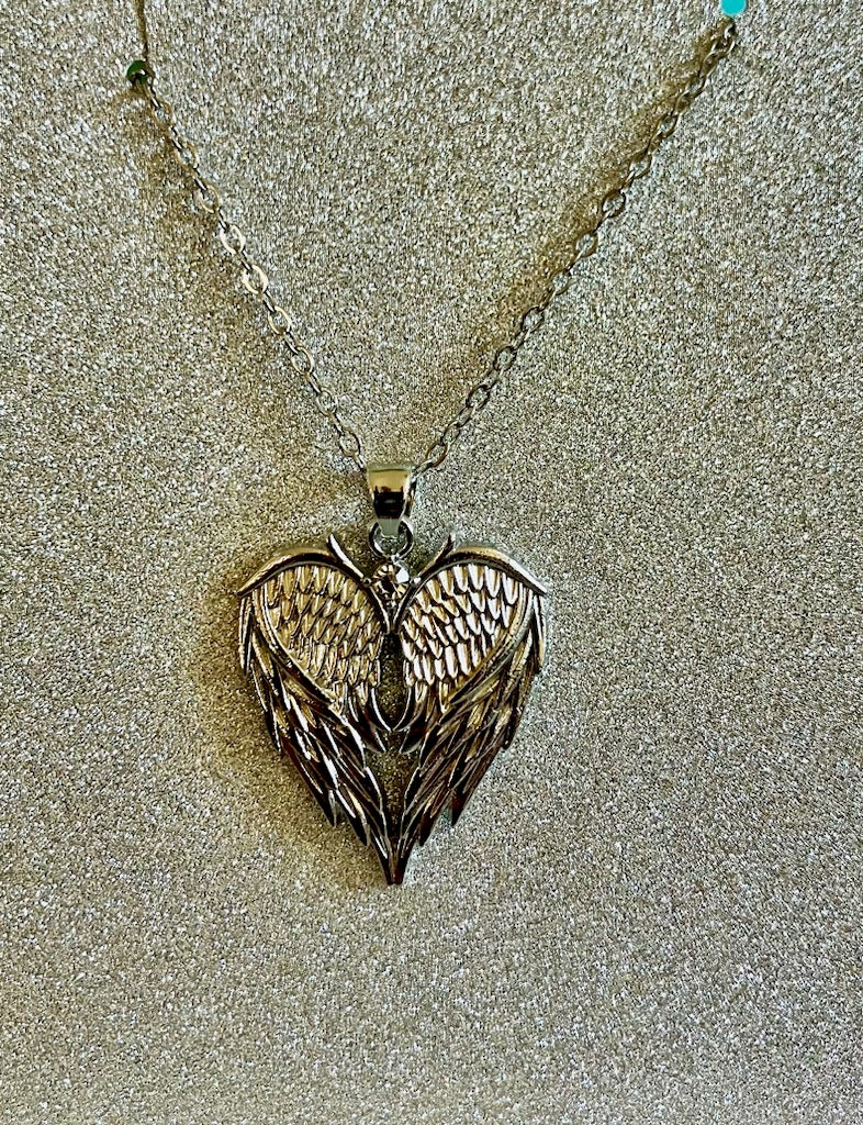 Silver Angel Wings Heart Pendant Necklace - Memorial & Protection Jewelry