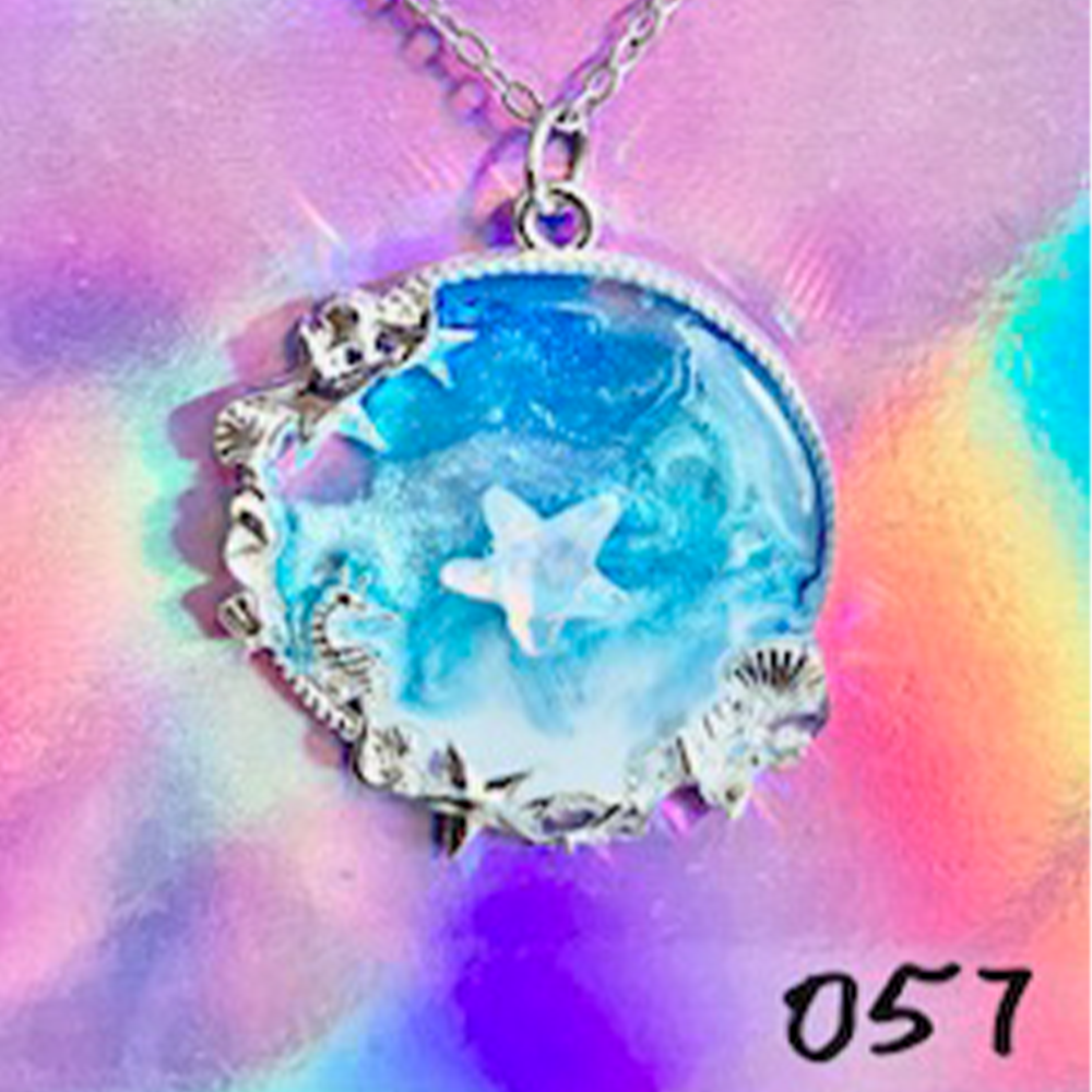 Silver Starfish Seashell Ocean Resin Necklace (057)