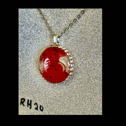 Solid Red Resin Necklace with Rhinestone Trim & Delicate Chain- Valentine's Collection