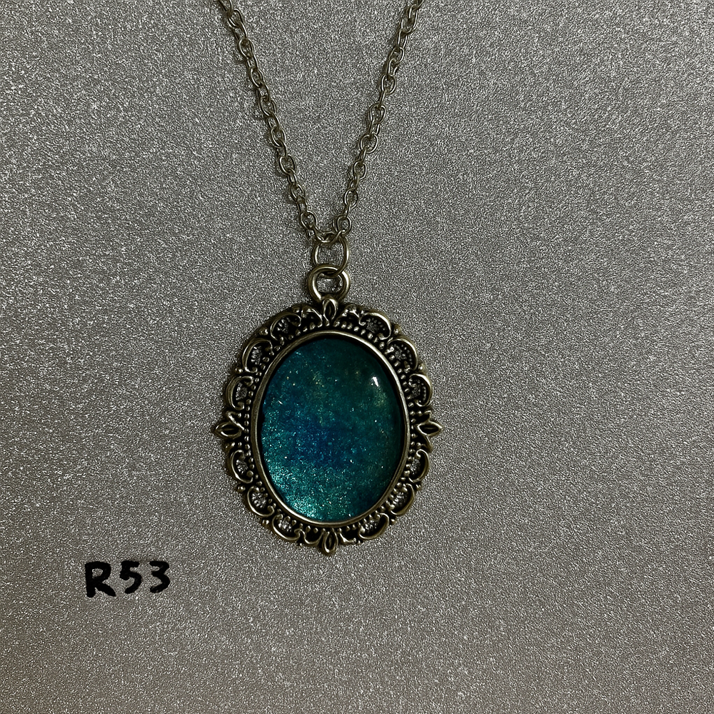 Sparkling Teal Lagoon Resin Pendant in Antique Silver Frame R53